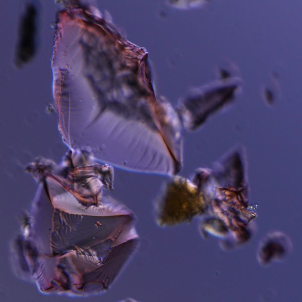 Large shards of crystalline material recovered from a stoneworker’s lungs
